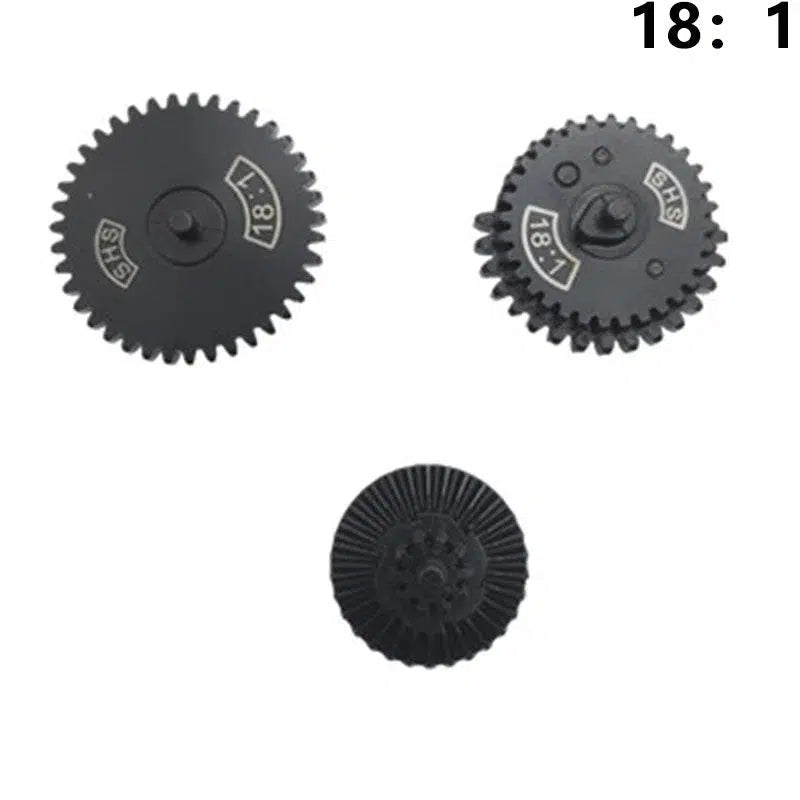 High quality carbon steel made SHS metal gears for gel blasters and airsoft v2 & v3 gearboxes upgrading modification.