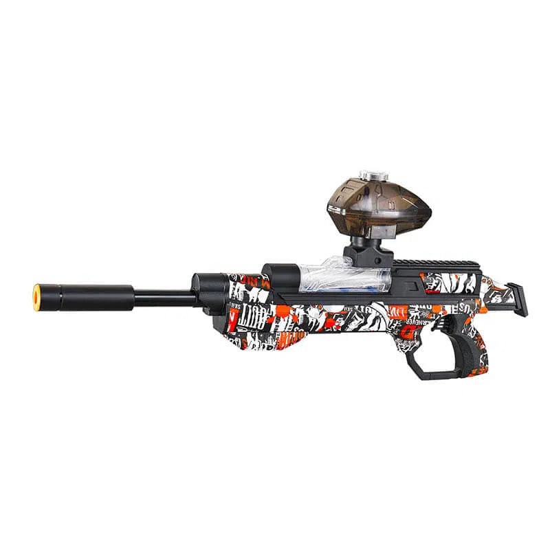 The ST630B Electric Hopper-Fed Gel Orbeez Water Beads Gun is a powerful and reliable tool that allows you to easily launch 7mm gel beads at speeds of up to 120FPS with a rate of 7 to 8 rounds per second. Made from ABS plastic, the ST630B is available in a range of graffiti, red, blue, and white colors and has a shooting range of 15-20m.