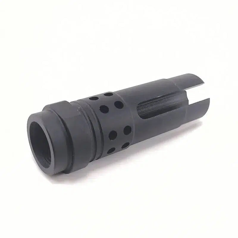This SF warcomp 566 muzzle flash hider is for gel blasters and airsoft with 14mm ccw thread.