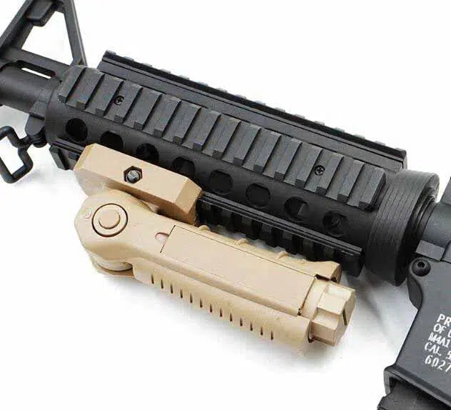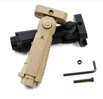 Transform your gel blasters with the Tactical Foldable Ambidextrous 5 Position UTG Foregrip. With 5 adjustable positions, ergonomics finger grooves, and concealed battery storage, this grip offers ultimate comfort and customization. Ambidextrous use of the pressure pad and easy slide-on mounting make it practical and versatile.