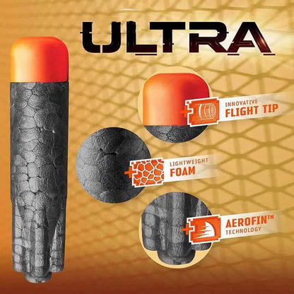 Experience game-changing superiority with the Ultra Darts Refill Pack. These farthest flying Nerf darts ever, with a range of up to 36 meters, feature an innovative flight tip, Aerofin technology, and lightweight foam. Compatible with Nerf Ultra blasters, keep backup ammo nearby with this convenient refill pack.