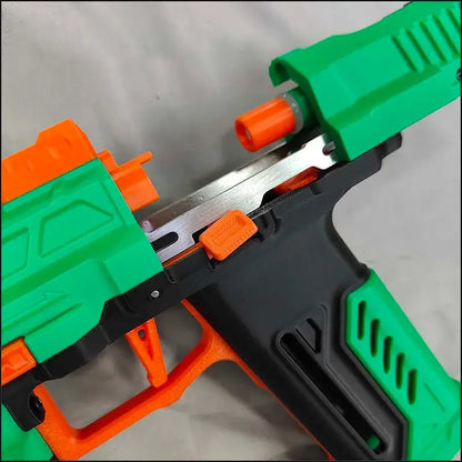 The WMYH Thunder Blazer Hand Cannon Blaster delivers fierce firepower with adjustable air flow and velocity up to 200FPS. Featuring a slide lock, safety button to secure the trigger and charging handle, plus a ready-to-shoot indicator, it’s built for precision and control. Equipped with top and bottom picatinny rails, this 44cm, 820g blaster is fully assembled and ready for action straight out of the box.