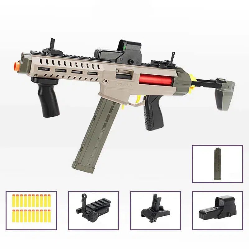 Experience the power and precision of the Xing Shen Fire Phoenix Foam Dart Blaster. With a metal inner barrel for increased accuracy, a quick-release spring mechanism for fast reloading, and an adjustable buttstock for a comfortable grip, this blaster will make you unstoppable in any foam dart battle. Get ready to take flight with the Fire Phoenix!