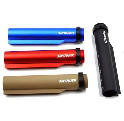 The XPOWER XP Metal Buffer Tube is an essential addition to any gel blaster or airsoft v2 receiver, including the M4, hk416, BD556, TTM, Gen9, SLR, and ARP9. Made of durable aluminum alloy, it offers superior toughness and style with multiple color options.