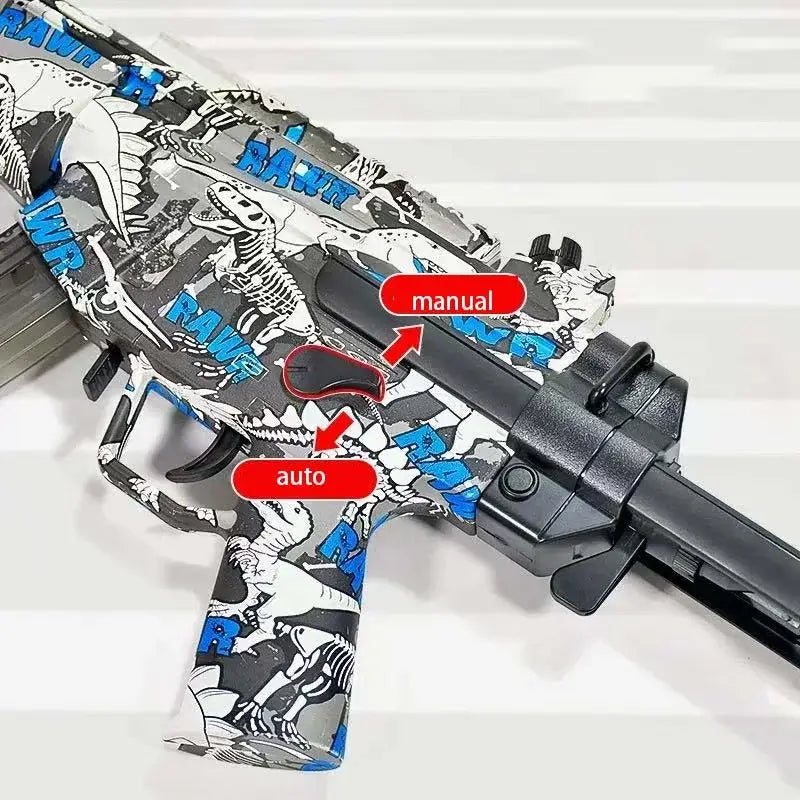 The XYL Little Moon MP5 Electric Graffiti Orbeez Gun is a powerful and versatile weapon. It features both manual and fully-automatic firing modes, a mag-fed design, and an extendable butt stock. Made of durable ABS plastic and with a capacity of 160 rounds, this gun offers a shooting range of 15-20m and a high velocity of up to 135 FPS. Perfect for gel ball battles.